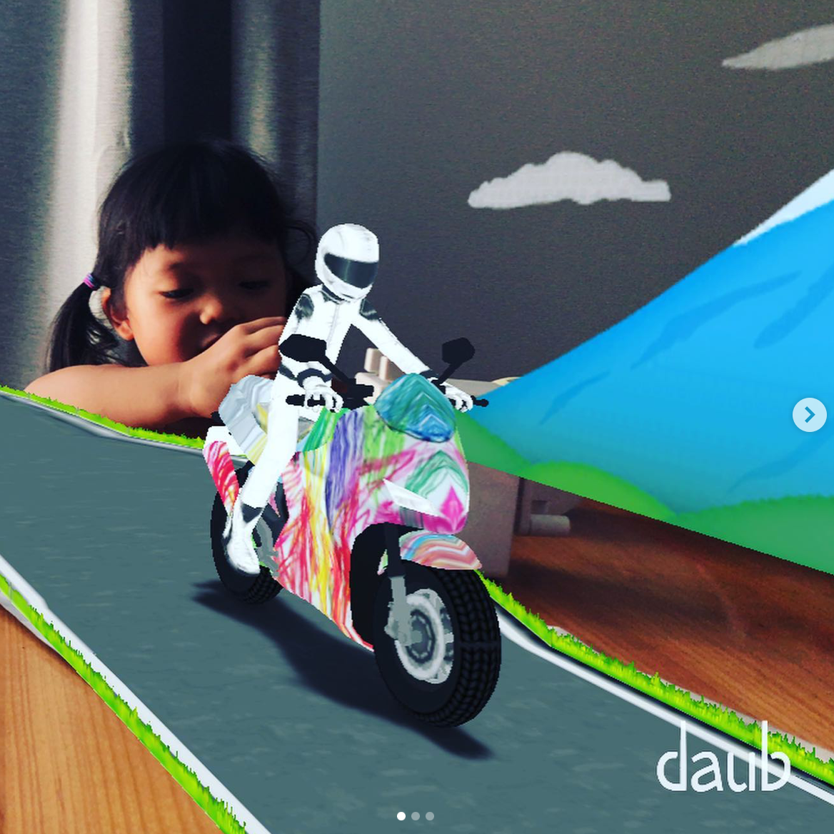 自分で塗ったオリジナルカラーのバイクが音とともに3Dで動き出す